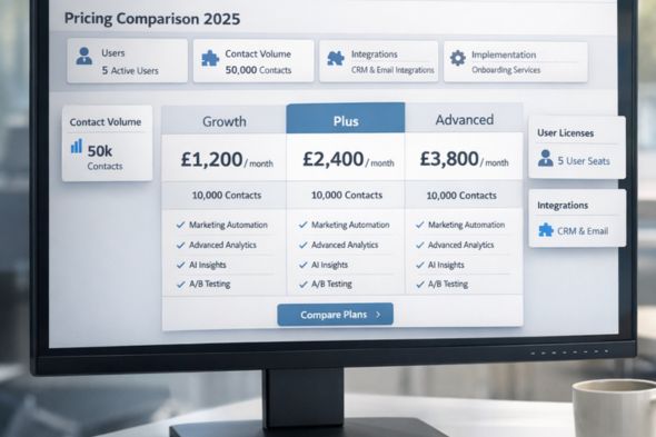 Marketo Engage typically costs £1,000-£2,500+ per month, depending on database size and features. Marketo often appeals to larger enterprises with complex needs.